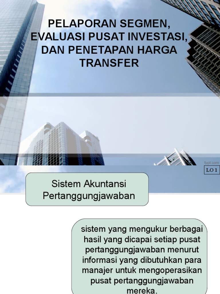 Pusat pertanggungjawaban pusat investasi. Pada bab ini akan dibahas mengenai arti pusat pertanggungjawaban secara umum kemudian akan dibicarakan mengenai pengukuran kinerja manajer dengan menggunakan criteria efisiensi dan. Struktur organisasi termanifestasi dalam bentuk struktur pusat pertanggungjawaban (responsibility centers). Pusat investasi merupakan pusat pertanggungjawaban yang paling luas, karenanya manajer berwenang dalam mengendalikan pendapatan dan biayanya, baik biaya operasi maupun biaya yang timbul sehubungan dengan usaha memperoleh sumber daya dan menentukan barang modal yang akan dibeli.