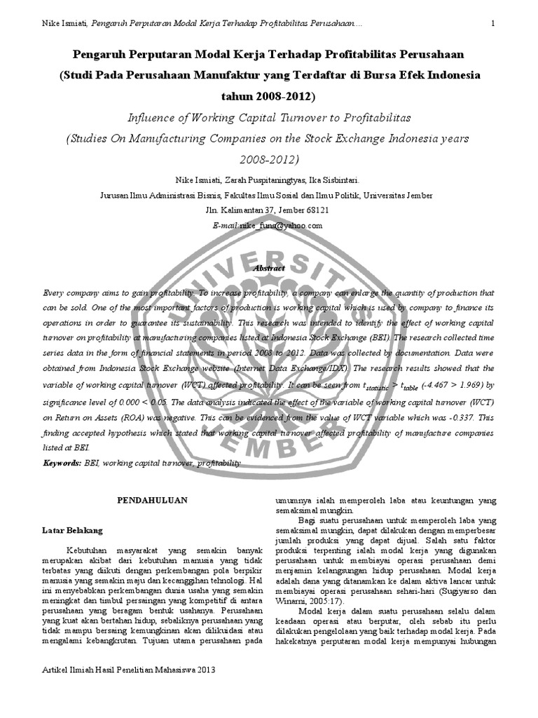 Jurnal Pengaruh Perputaran Modal Kerja Terhadap
