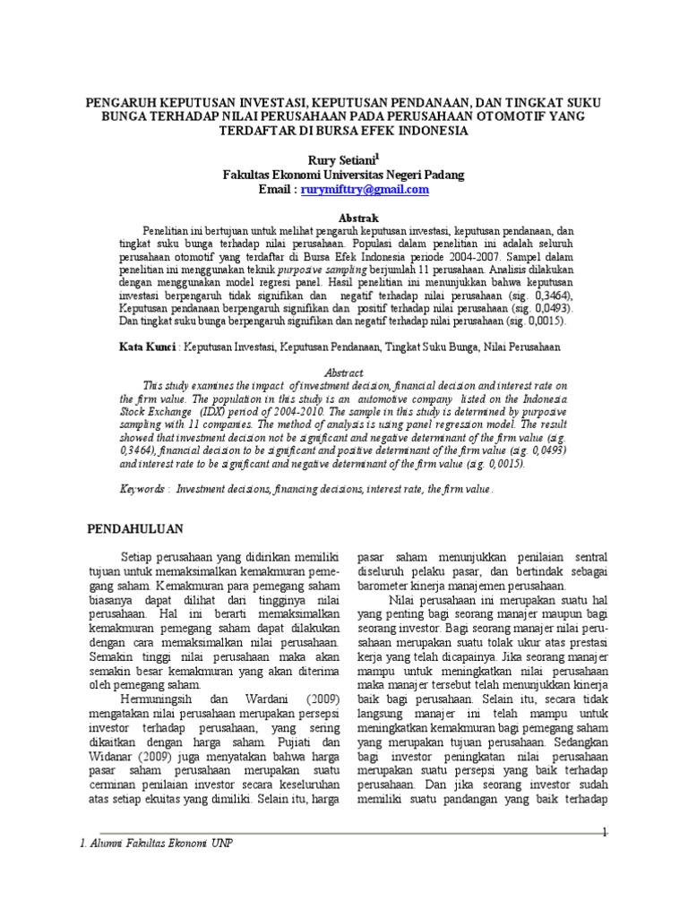 (PDF) PENGARUH KEPUTUSAN INVESTASI, KEPUTUSAN PENDANAAN